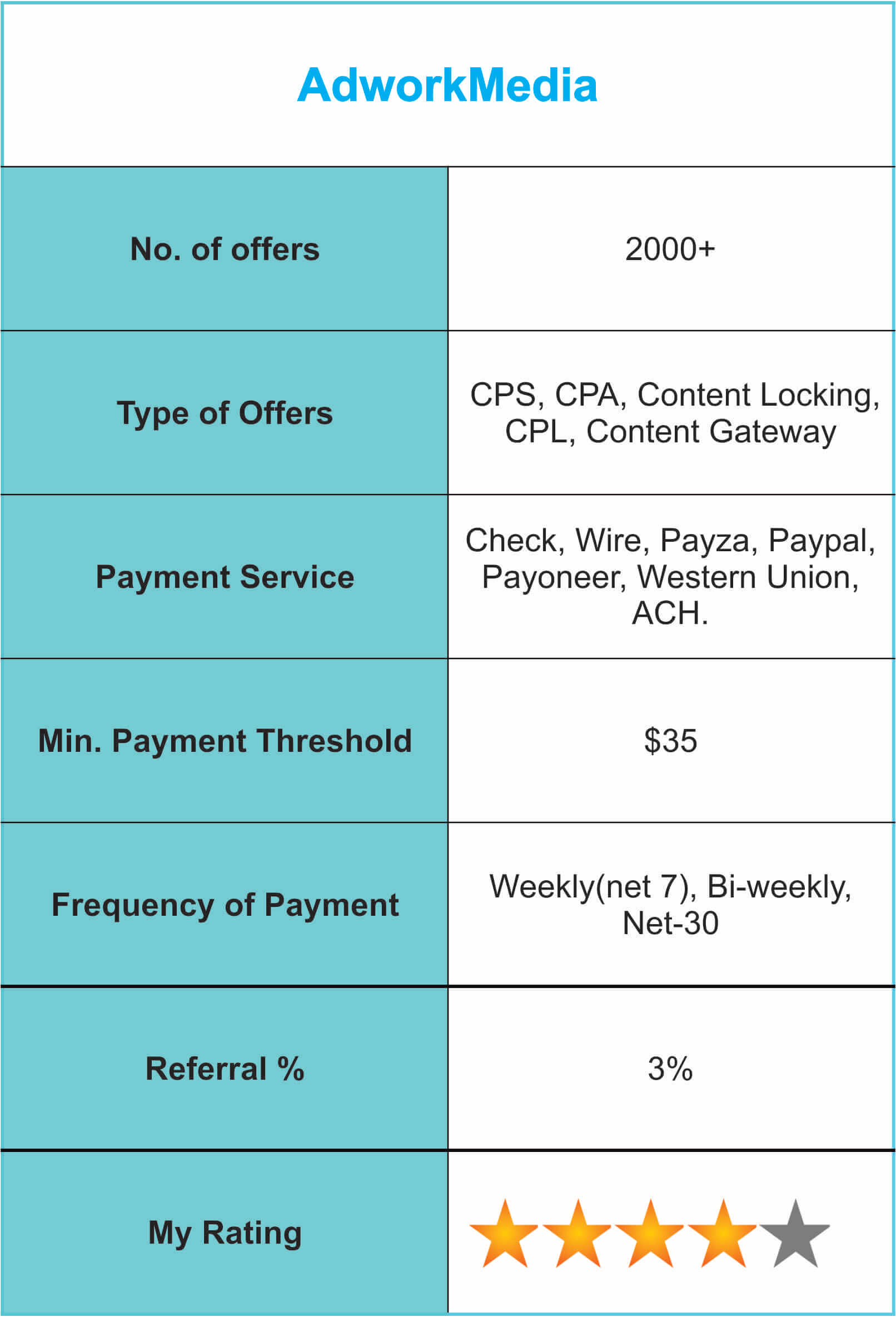 No matter which part of the world you are from, there will be a way for you to get paid on AdworkMedia. This could be via Paypal, Wire Transfer, by Check, through Payza, Western Union, Payoneer or ACH Direct Deposit.